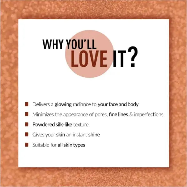 Your body deserves the very best of glowing radiance – so we created our very own Body Shimmer. Its light-reflecting particles adhere to your skin and minimise the appearance of pores, fine lines, and imperfections. Lightly dust some shimmer on your cheeks, dècolletage, and wherever you want to add some depth and drama.