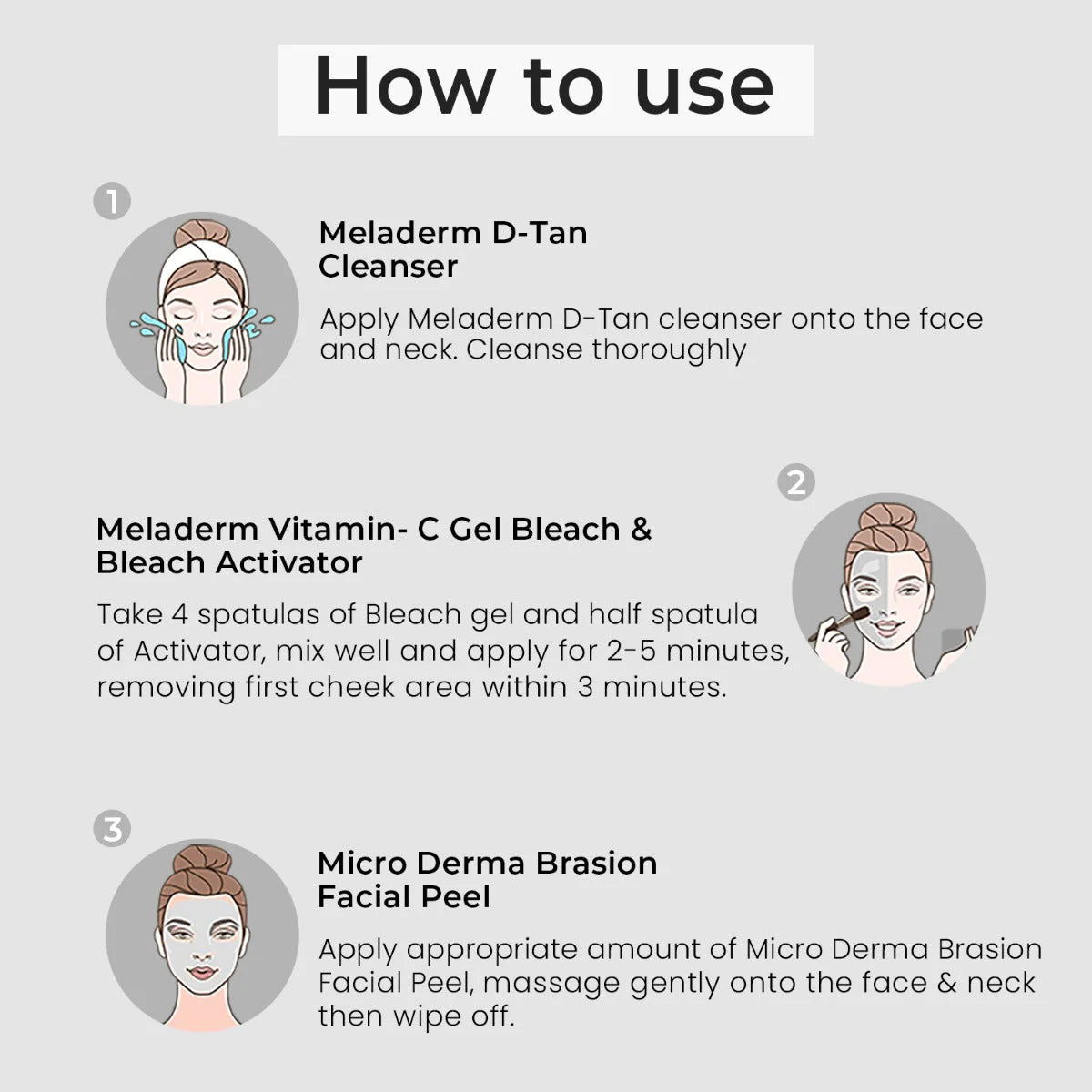 ⦁ Mix properly one spatula of activator in the gel jar. Apply evenly on the entire face & neck. Leave it for 3 minutes. Remove it.