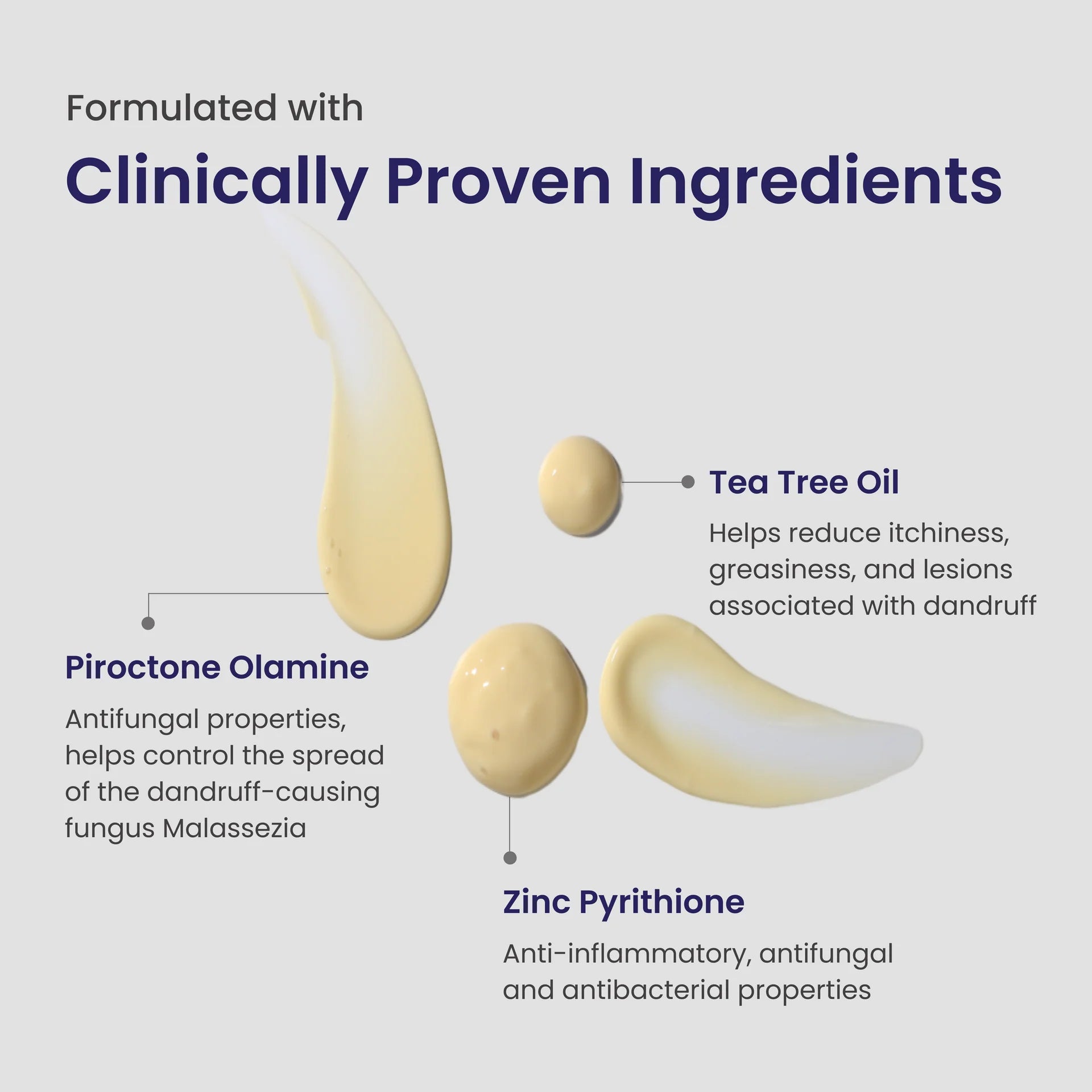 Purified Water, Zinc Pyrithione, Piroctone Olamine, Aloe Vera Extract, Glycerin, Panthenol, Propylene Glycol, Mild Emollients, Anti-Fungal Agents